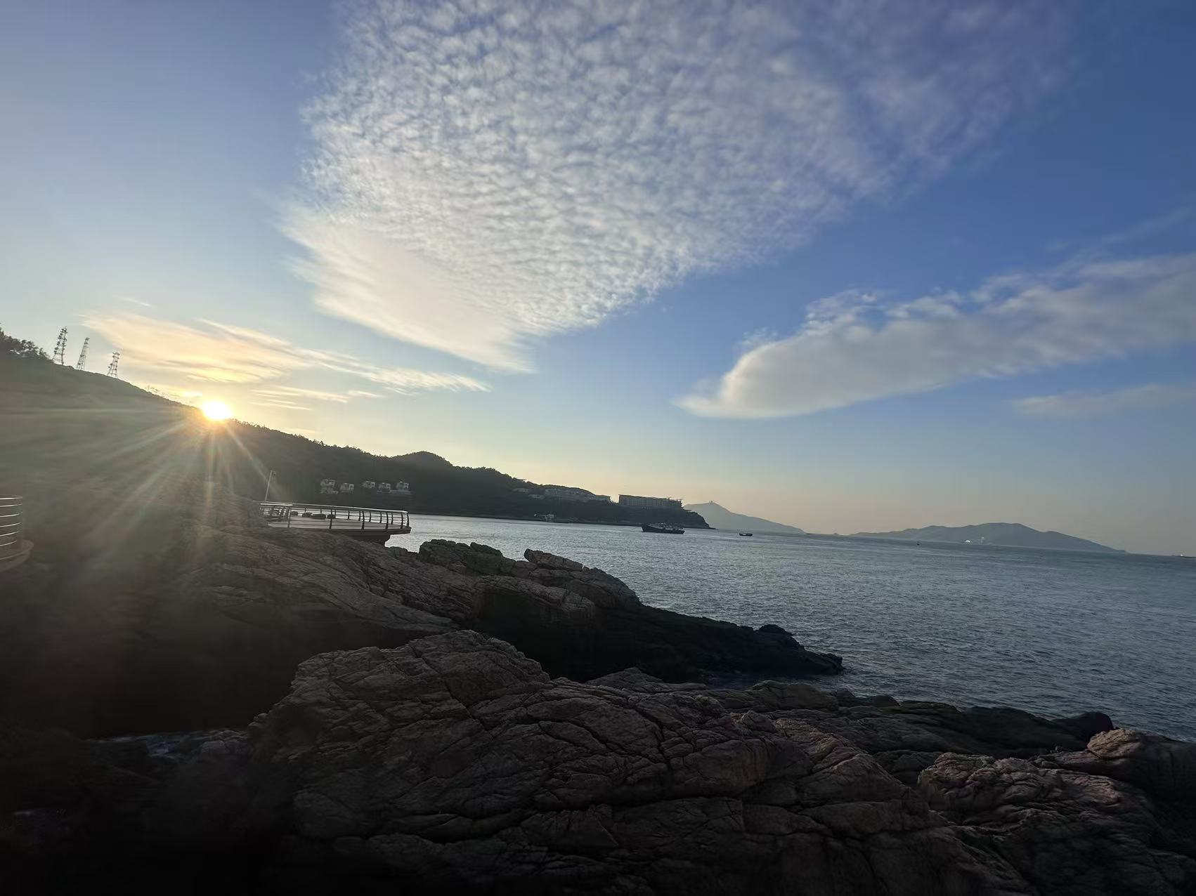 历经数小时的奔赴,11点左右我们抵达海岛。先将行李寄存在酒店,轻装前往码头,12点至14点30分的时光,在码头餐厅的美味与周边的自由逛游中悄然度过。海风拂过脸颊,带着咸湿的气息,同事们或驻足拍照,或闲聊打趣,旅途的疲惫被这惬意的氛围悄然消解。14点30分,我们乘酒店车辆返回,14点40分正式办理入住后,便迎来了自由时光。有人选择在房间休憩,养精蓄锐;有人则拿起相机,穿梭在海岛的街巷与海岸,用镜头定格东澳岛的午后美景,工服的白色与蓝天碧海相映,成为岛上一道独特的风景线。